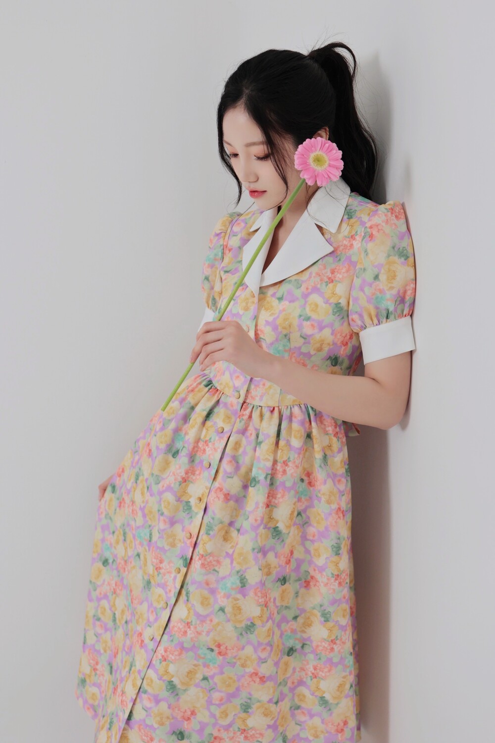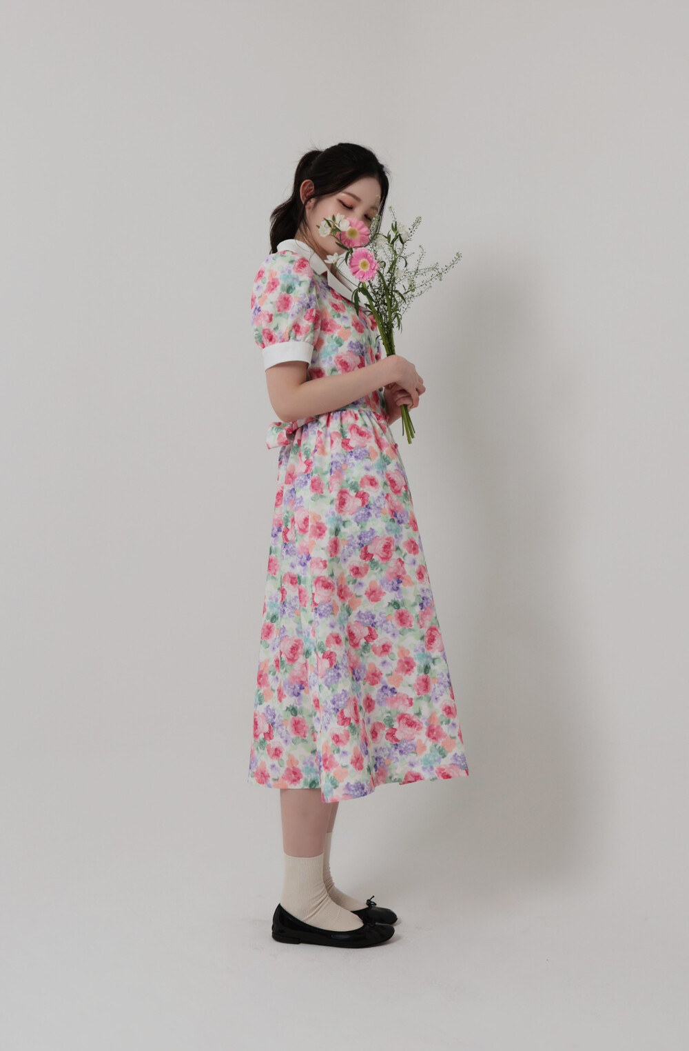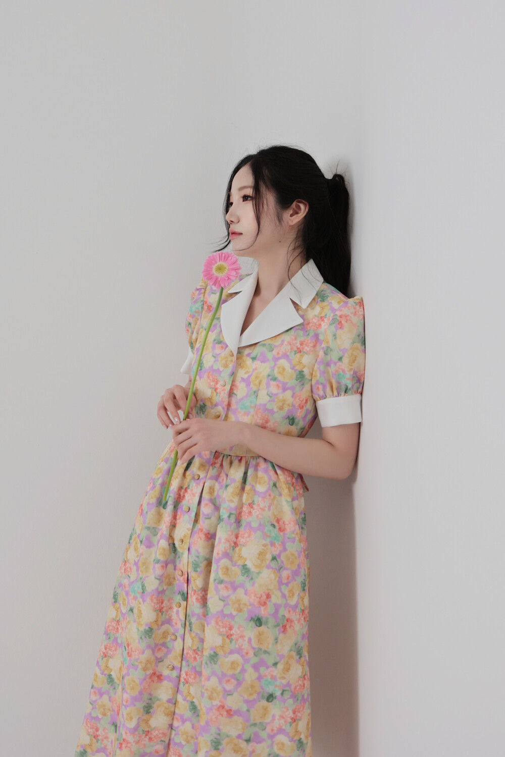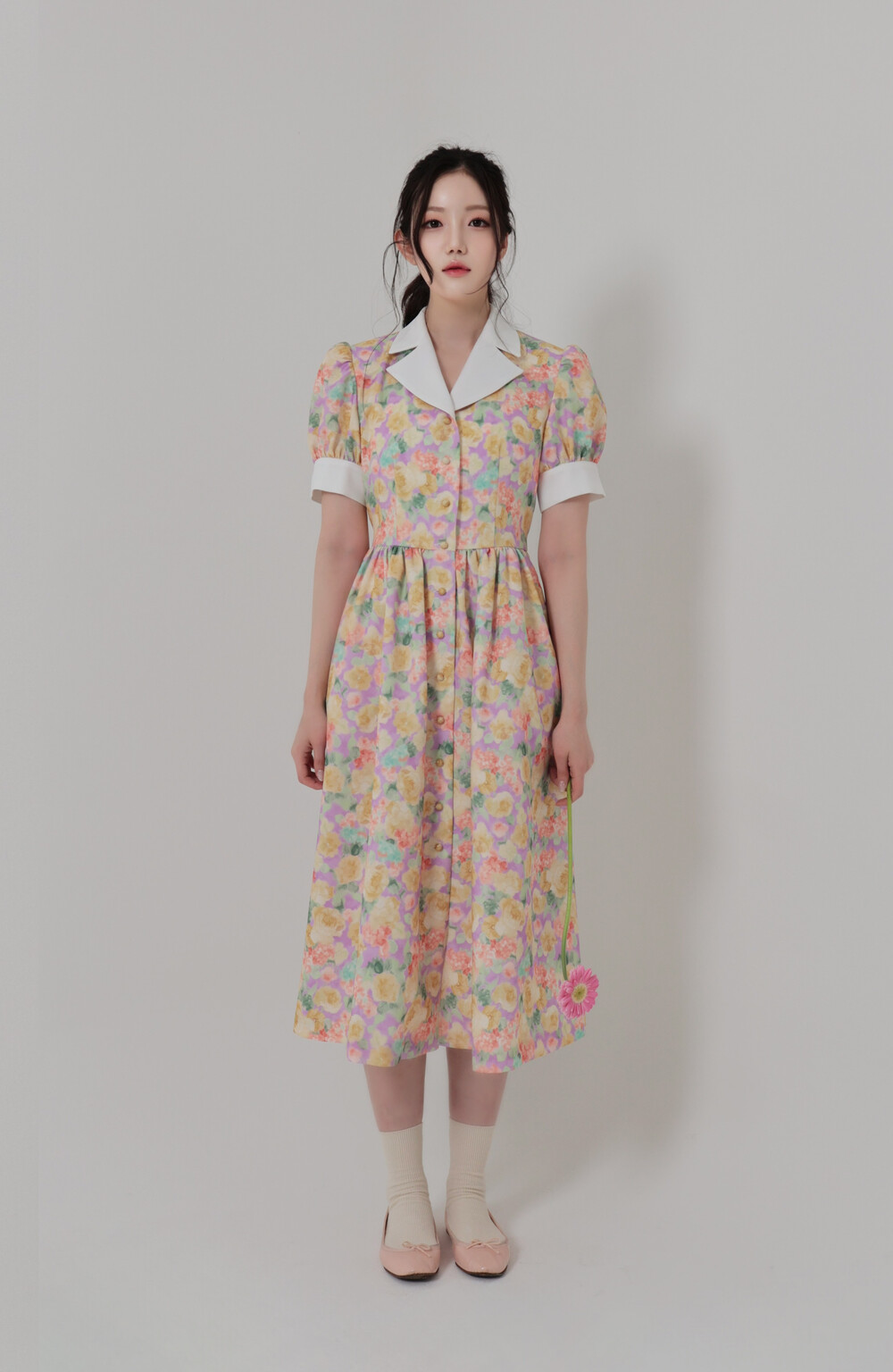 디자인 특징: 퍼프 소매, 허리끈 조절 가능, 빈티지 느낌의 카라 디테일